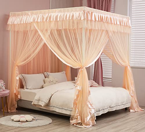 Mengersi Canopy Bed Curtains for Girls Kids - Bed Canopy for Girls Bed Drapes Mosquito Net - Cute Princess Bedroom Decoration Accessories(Full Peach) Price in USA