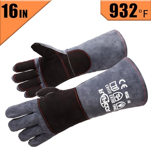 Leather Welding Gloves Heat Resistant BBQ gloves Grill Gloves Fireplace Gloves 16 INCH - Black - Price in USA
