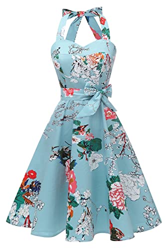 Topdress Women's Vintage Polka Audrey Dress 1950s Halter Retro Cocktail Dress Mint Flower 2XL Price in USA