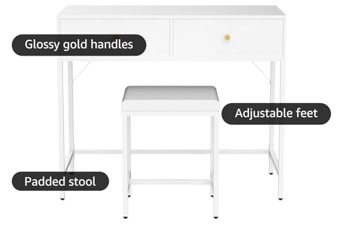 SUPERJARE 35.4"" White Desk with 2 Drawers Modern Makeup Van...