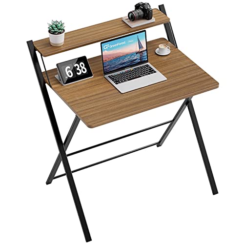 GreenForest - Scrivania pieghevole a 2 ripiani per computer con mensola per casa ufficio per piccoli ambienti non richiede montaggio modello espresso Price in USA