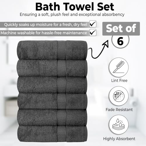Introducing our exquisite 6-Piece Bath Towel Set meticulously crafted from 100% Turkish cotton to elevate your bathroom experience to unprecedented levels of luxury. Our towels are designed to cater to your every need ensuring utmost comfort and indulgence. Wrap yourself in the lavish softness of our extra-large towels boasting a plushness that's unmatched. Made with a thick and absorbent weave these towels provide a quick-dry feature ensuring you stay fresh and dry after every bath. The oversized design of our towels offers ample coverage whether you're drying off your body hands or face. Each piece in this set is meticulously crafted to meet the highest standards of quality and comfort promising a spa-like experience within the confines of your home. Transform your bathroom into a sanctuary of relaxation with our premium hotel and spa-quality towels. Their luxurious texture and superior absorbency make them ideal for pampering yourself after a long bath. Not only do our towe