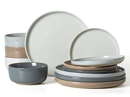 Selamica Ceramic 12-Pieces Dinnerware Sets Ceramic Dish Plat...
