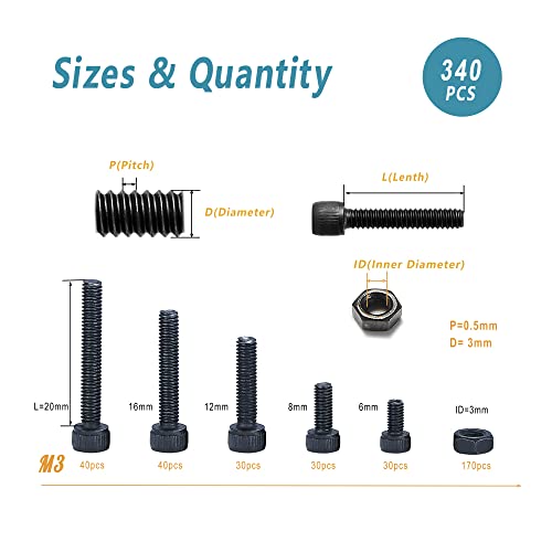 340 Pcs M3 Small Metric Screw Assortment Suitable for 3D Pri...