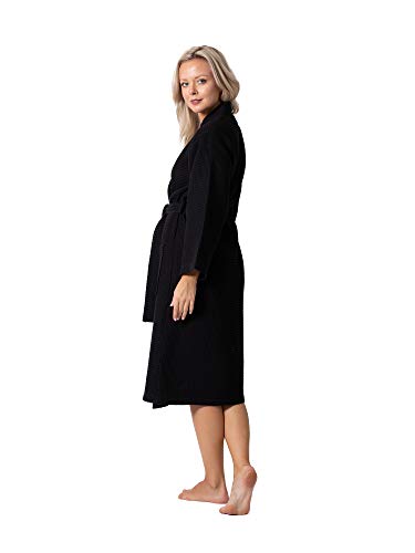 Turkish Linen Waffle Knit Lightweight Kimono Spa & Bath Robes for Women - Quick Dry - Soft (Black Large) Price in USA