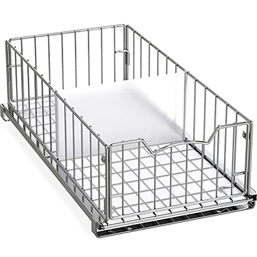 Organize any cabinet with this convenient sliding basket organizer. Its design makes it perfect for the pantry under the sink or on your countertop. It has an attractive metal construction and lift-out baskets with easy to carry handles. Stackable Design: Buy two or more and stack them together. Compatible Models of Stacking: CB-001 Series CB-002 Series CB-007 Series and CB-008 Series.