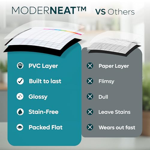 Take Control of Your Calendar Clear your mental clutter immediately by putting your 4 vibrant markers to work on your new weekly magnetic calendar for refrigerator. When you’re ready to reset for the next week your magnetic eraser is on hand to work its wiping magic on the fridge whiteboard magnetic planner.. Shields against Stains Erase effortlessly on your premium stain resistant film which prevents ghosting and staining on your pristine magnetic calendar dry erase board. Without that pesky residue from dry erase markers you can easily see your weekly planner whiteboard for fridge at a glance. Thoughtful Design for your Daily Rhythm Starting with Monday you can logically plan out your week with your fridge planner. The daily boxes on the magnet calendar measuring 1.75x2.25 in. provide ample space for writing each day’s events and notes. Zero Slip. Total Grip. Stick your magnetic calendar for fridge to any compatible surface and