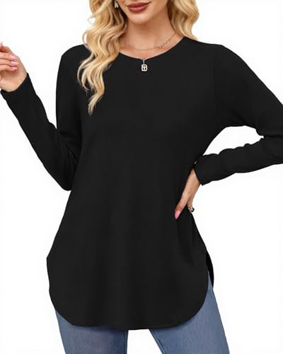 GAYHAY Black Long Sleeve Shirt for Woman Crew Neck Casual Tu...