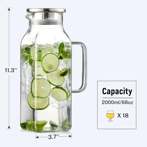 Glass Pitcher With Lid and Spout 1.8 Liter 60 oz Glass Pitch...