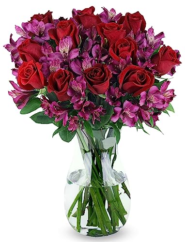 Benchmark Bouquets Stunning Roses & Alstroemeria Glass Vase Included Gift Fresh Flowers for Christmas Holiday Birthday Anniversary Sympathy Congratulations Thank You Price in USA
