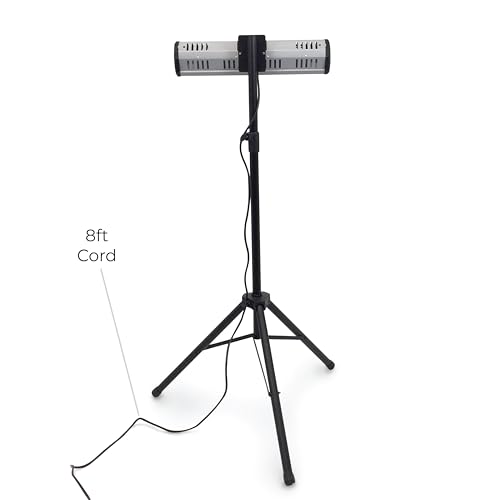 INSTANT HEAT- Infrared heat is silent and comfortable. It warms objects instead of just the air. 5200 BTU Output. ⢠PORTABLE- (13' cord) Ideal for patios balconies workshop garages etc. â¢Â PLUG & PLAY- Standard 110 V plug in cord for use anywhere there is an outlet. ⢠IPX4 WEATHERPROOF- Protected against rain and dust â¢Â TUVelectric certified Specs Model: HS-1500-TRC UPC: 854271005598 Wattage: 1500 AMPS: 12.5 Sound: 0 decibels BTU: 5200 As Primary Heat: up to 120 sq ft As Secondary Heat: up to 300 sq ft Unit Dimensions: 24â L x 8â W x 6â H Weight: 8.85 lbs PLUG IN: 110V Standard