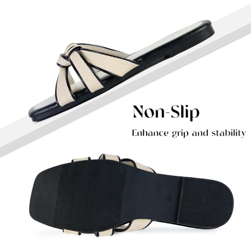 Putu Women's Flat Sandals Square Toe Slide Sandals Braided F...
