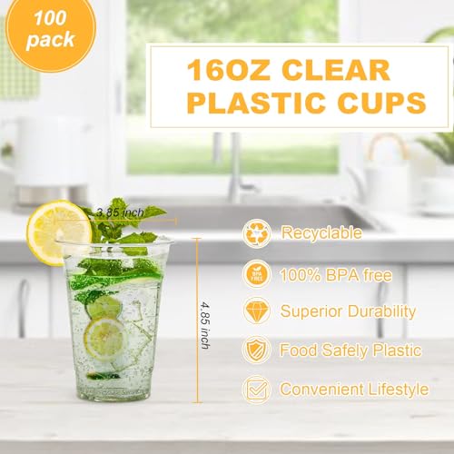 TashiBox 100 Count - 16 Ounce Plastic Drink Cups Ice Coffee ...