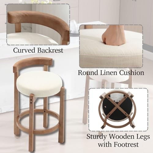 LukeAlon Mid Century Linen Counter Stools Set of 4 Upholster...