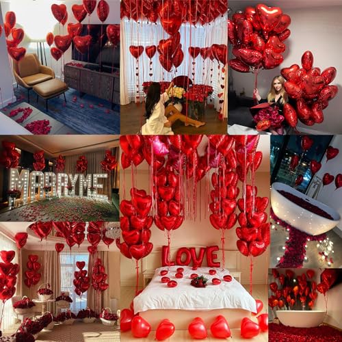 What will you get 1). 12'' Red Heart Shape Latex Balloon 10pcs 2).12'' White Heart Shape Latex Balloon 10pcs 3). 12'' Pink Heart Shape Latex Balloon 10pcs 4). 1 PinK ribbon HOW TO DECORATE WITH THIS BALLOONS AND BANNER SET: 1.Bundle the heart balloons together and attach curling ribbon on it to create beautiful balloon bouquet. 2. This set of balloons makes a great prop for awesome photos. 3. Add the balloons to a flower arrangement basket or gift. 4. Tie the balloons to weights and arrange them around the room at different heights for creating a lush balloon forest look. 5. Set up an arrangement of roses champagne and cupcakes with heart balloons on a gold platter for a romantic Valentine's centerpiece. 6. Attach curling ribbon to inflated balloons and let them float to the ceiling or scatter on floor. 7. Hang