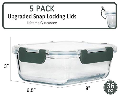 Elevate your meal prep game with our premium 5-pack of 36 oz glass meal prep containers. Crafted from durable non-porous borosilicate glass these rectangular three-compartment containers are perfect for portion control and organizing your meals. The upgraded BPA-free snap locking lids with silicone seals ensure an airtight leak-proof freshness keeping your food fresh and secure. Enjoy the convenience of using these containers in the microwave oven freezer and dishwasher. Measuring 8 x 6 x 2.7 inches they are space-saving and stackable keeping your kitchen organized. Upgrade your food storage experience with these high-quality stain and flavor-resistant containers.