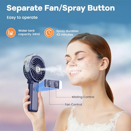 HandFan Portable Misting Fan Handheld Mister Fan USB Rechargeable Personal Mist Fan Battery Operated Spray Water Fan Mini Electric Cooling Hand Fans for Eyelash Travel Outdoors Hiking(White) Price in USA
