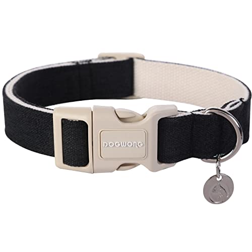 DOGWONG Cotton Hemp Dog Collar Heavy-Duty Black Dog Collar A...
