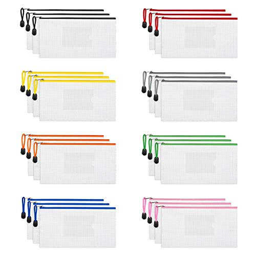 Sooez 24pcs Mesh Zipper Pouch Bags with Label Pocket A6 Penc...