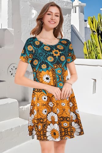 Beach Dresses for Women Summer Tshirt Floral Sundress Sleeve...
