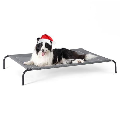 Bedsure Large Elevated Cooling Outdoor Dog Bed - Raised Dog Cots Beds for Large Dogs Portable Indoor & Outdoor Pet Hammock Bed with Skid-Resistant Feet Frame with Breathable Mesh Grey 49 inches