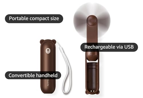 14-21 Hrs Desk USB Small Fan with Power Bank Portable Outdoor Mini Fan Battery Operated Pocket Fan Handheld Folding Two Speeds Whisper Quiet Flashlight for Kids Brown Price in USA