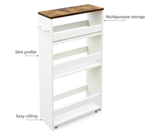 TEAMIX 4 Tier White Slim Storage Cart with Handle Slide Out ...