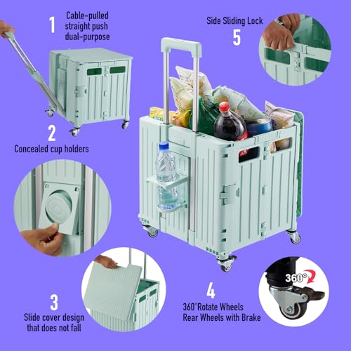 Folding Utility Cart Portable Rolling Crate Handcart Shoppin...