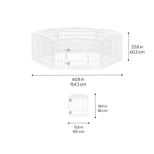 Take your pet's playtime to the next level with the IRIS USA exercise playpen for extra small to medium sized dogs and other family pets. The easy assembly pen is as versatile as it is durable giving you the option to use it as an indoor dog fence play gate dog play yard or exercise pen and use it however you choose for years. Position it in different shapes to best suit your space capacities and fit your pet's needs and easily move your pet in and out of the exercise pen by using the door that's built into the front panel and relax with the knowledge that the non-skid rubber feet will keep the pen in place and protect your floors. Let's make life a little easier for the whole family.