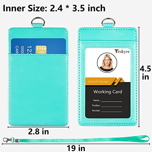 Teskyer Leather ID Badge Holder Vertical PU Leather ID Badge Holder with 1 Clear ID Window & 1 Credit Card Slot and a Detachable Neck Lanyard Green