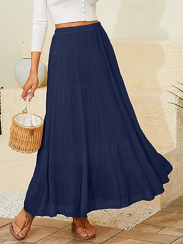 NASHALYLY Women's Chiffon Elastic High Waist Pleated A-Line Flared Maxi Skirts (L Flower-205) Price in USA