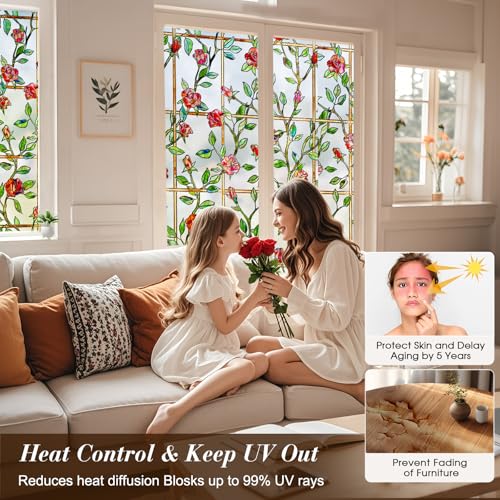 Volcanics Privacy Window Film Decorative Window Cling Glass Film Reflective 3D Window Film 90 x 300CM Non-Adhesive Window Stickers Static Cling Window Covering