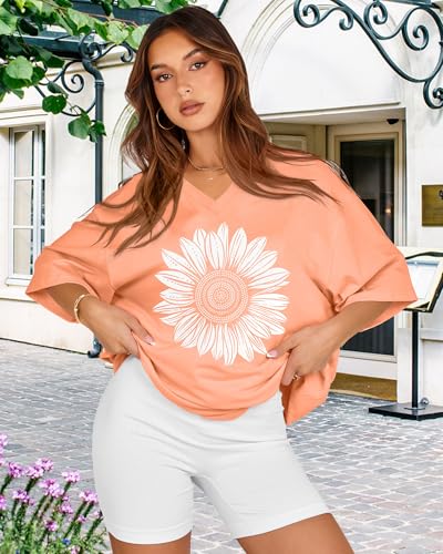 rosemia Oversized Tshirts for Women V Neck Short Sleeve Summ...