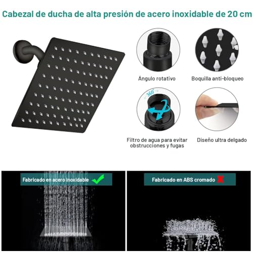 Your search for a better more relaxing shower is finally over. Hopopro brings for you the high performance and powerful fixed shower head with 5 different modes. Specifications Color - Gray Material - ABS Chrome & Metal Spray Settings - Mist Mist&Rain Rain Rain&Massage Massage Finish Type - Chrome 1. Comes with High pressure and powerflow flow with 5 different spray modes Simply turn the dial and choose your favorite spray mode and enjoy wonderful and healthy shower moment. 2. The design makes this shower head more flexible to adjust angles or directions for a more comfortable shower. 3. Hopopro Shower comes with 4.1 inch panel with 47 self-cleaning nozzles and 19 abs nozzles. Remove hard water deposits to ensure you always feel the full force of this luxurious rain shower head. 4. Made of ABS chro