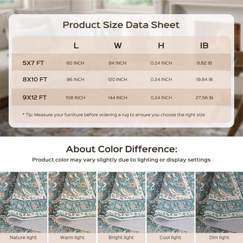 WITSHOCK Washable Area Rug Area Rugs 9x12 Living Room Bedroo...
