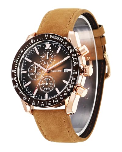Casotime Watches for Men Leather Band Chronograph Mens Watch...