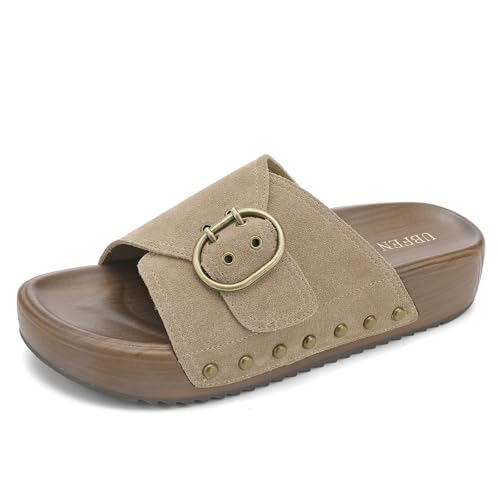 UBFEN Womens Platform Sandals Slides Genuine Leather Adjusta...