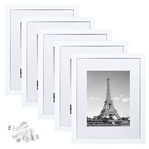 upsimples 11x14 Picture Frame Set of 5 Display Pictures 8x10 with Mat or 11x14 Without Mat Wall Gallery Photo Frames White