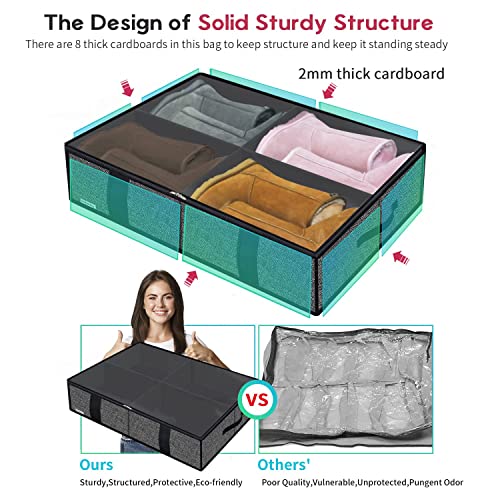 Onlyeasy 2 Pack Under Bed Shoes Storage Bag Organizer (14+4 Pairs) Collapsible Shoe Boot Container with Handles Underbed Storage Solution for Kids & Adults 86x60x15cm Linen-like Black MXAUBS14S4