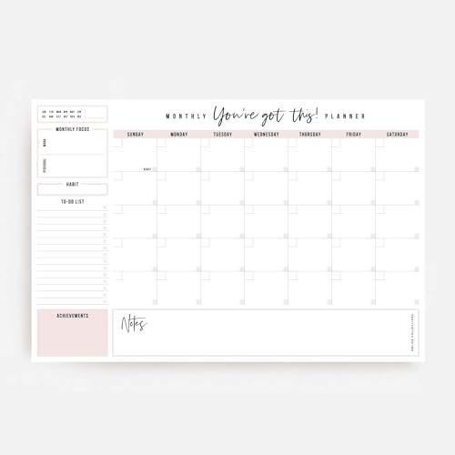 Bliss Collections Monthly Planner \"You've Got This\" Undated Desk Calendar and Planner for Organizing and Scheduling Tasks Productivity Tracker Goals Notes and To-Do Lists 12\"x18\" (18 Sheets) Price in USA