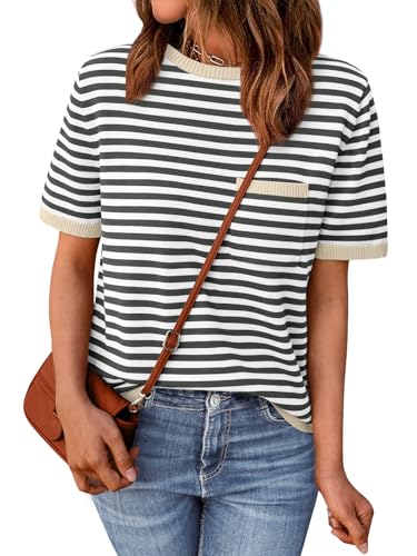 LILLUSORY Womens Crew Neck Short Sleeve Striped T-Shirt Apri...