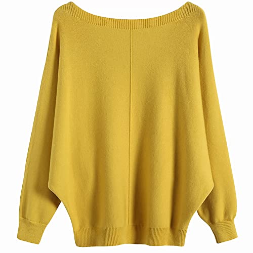 Ckikiou Womens Lightweight Oversized Boat Neck Sweaters Tops Dolman Batwing Sleeve Ribbed Knitted Pullovers Yellow-2