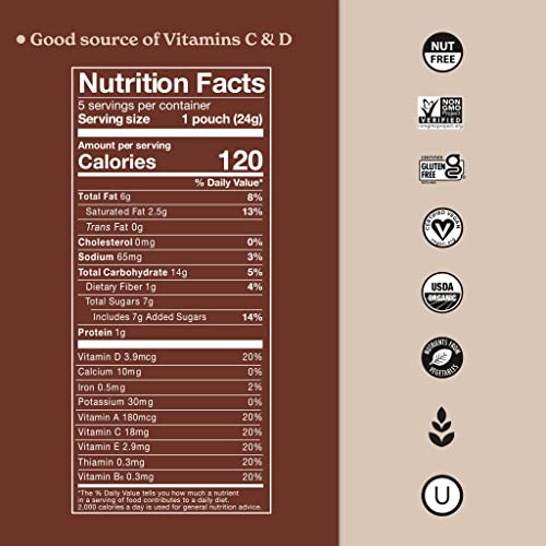 MadeGood Chocolate Chip Granola Minis give families a delicious and easy way to curb a sweet tooth while on the go. The Minis include pure gluten free oats and ethically sourced dark chocolate chips for an irresistible healthy and chewy chocolate snack. These bites are non-GMO certified organic gluten free vegan and kosher to suit numerous lifestyles. Each Granola Mini is made in a peanut and tree nut free facility ensuring a tasty snack that is safe for schools. With the nutrients from six different vegetables (spinach broccoli carrots tomatoes beets and shiitake mushrooms) each bag of Minis gives parents a snack they can feel great about feeding the kids. Portable and bite-sized snacking makes packing healthy options into lunchboxes backpacks and purses easier. Made Good Chocolate Chip Granola Minis deliver beneficial antioxidants to consumers while also providing a guilt-free dessert