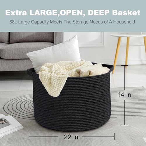 MEGASKET Large Black Blanket Basket 22"" X 22"" X 14"" Woven...