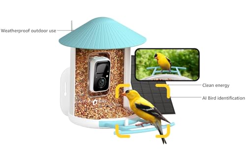 Bilantan Metal Smart Bird Feeder with Camera Solar Powered O...