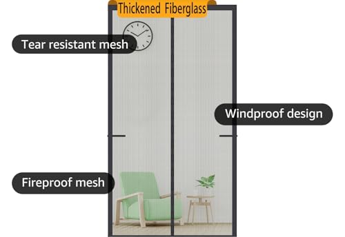 Package included: 1x Door Curtain 1x Roll of Magic Tape 1x Box of Push Pins 1x Installation Tool 1x Instruction 0.15mm Thickness Environmental Protection PVC low temperature resistant -40 degrees in winter without deformation or broken 36 Powerful Magnets 36 upgrade version strong magnets are sewn in the middle of the curtain to achieve a seamless closing and avoid noise when you go through the door curtain 4 Gravity Sticks 4pcs gravity sticks are added in the bottom to prevent door curtain from being blown away by the wind Full Frame Magic Tape Design Super strong magic tape around every inch along the top and both sides avoid dropping and enable you to remove the door screen any time. Semitransparent White Giving a misty beauty light transmittance up to 60% not only bring ample natural light down into the interiors but also enhance privacy! Advantages o