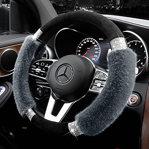 Achiou Rhinestone Fluffy Steering Wheel Cover - Comfortable Non-Slip Luxury Faux Wool Universal Fit for 14.5\" to 15\" Steering Wheels Price in USA