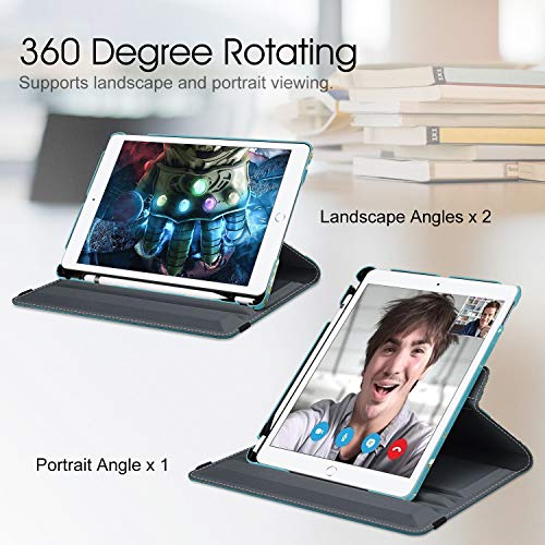 PLEASE NOTE: This 360 Degree Rotating case is only designed for iPad 9th Generation (2021) / 8th Generation (2020) / 7th Gen (2019) 10.2 Inch Tablet; It will Not be Compatible with other iPad Tablets. NOTE: Given the design of the case the hole has to be centered on the shell to insure proper balance while using the tablet stand and to insure proper protection of Apple Pencil which causes the logo to be slightly off-center. This Fintie case for iPad is a must have a perfect companion for an easy and enjoying life. It is designed with functionality and visual elegance in mind this case is not typical. Built-in Stand Case converts into a stand to hold the device upright for hands-free viewing of video online books and more. Hard-Shell Hard-shell design offers a molded exterior to protect fragile glass displays that are prone to damage when bent. Scratch-Resistant Lining This soft-to-the-touch m