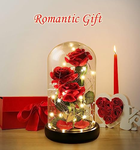 Rose Flowers With LED Strip light in glass dome creative romantic atmosphere for lover. Led rose flower is appreciation best wishes love passionate and romantics. Colorful roses are great gifts for loved ones and glass dome rose also would look amazing as a centerpiece in your living room or bedroom. Roses flowers in a glass dome are brighter and better preserved than preserved flowers and do not need any care just place the roses flowers wherever you want Not only for romatic gift but also memory Enjoy every moment with our most romantic gifts. Each Rose Flower is an unique work of art that is long-lasting friendship beauty and love. Amaze the love of your life with the gift of an Eternity Rose and give them the token of love they deserve. Perfect to any decorative or holiday project suitable for party wedding indoor decoration etc. Characteristics: 1. The rose display is clear and easy to clean.