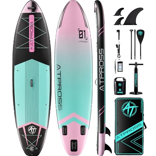 FunWater SUP Inflatable Stand Up Paddle Board 10'x31''x6'' Ultra-Light Inflatable Paddleboard with ISUP Accessories Fins Adjustable Paddle Pump Backpack Leash
